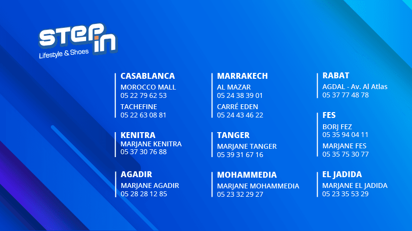Tu peux découvrir d’autres modèles de mocassins, sneakers et sandales de la marque dans les magasins « Step In ».